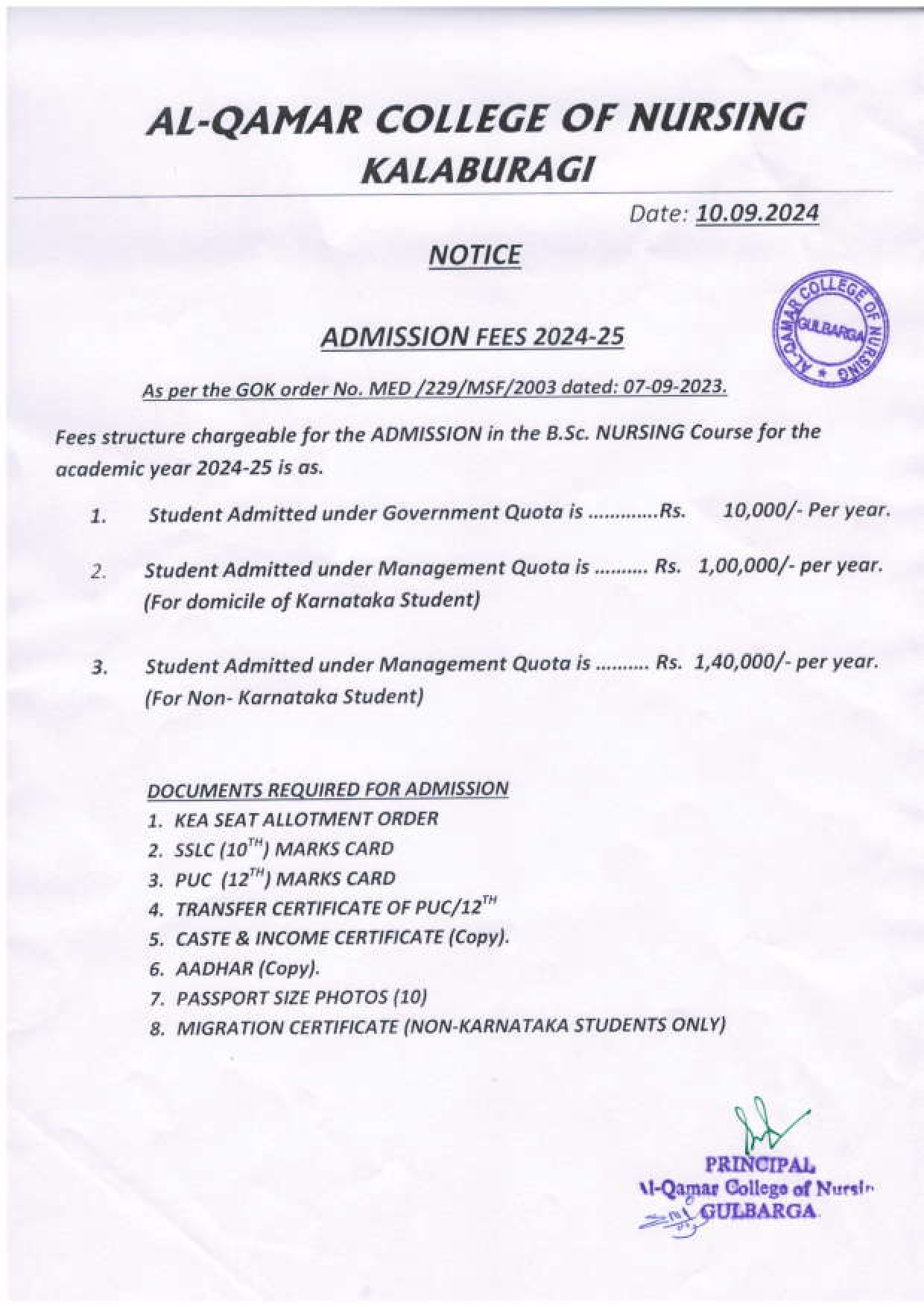 Subject to change according to the regulations of the Indian Nursing Council (INC), Rajiv Gandhi University of Health Sciences (RGUHS), the State Nursing Council of Karnataka, Karnataka State Diploma in Nursing Examination Board (KSDNEB) and the Court decisions.